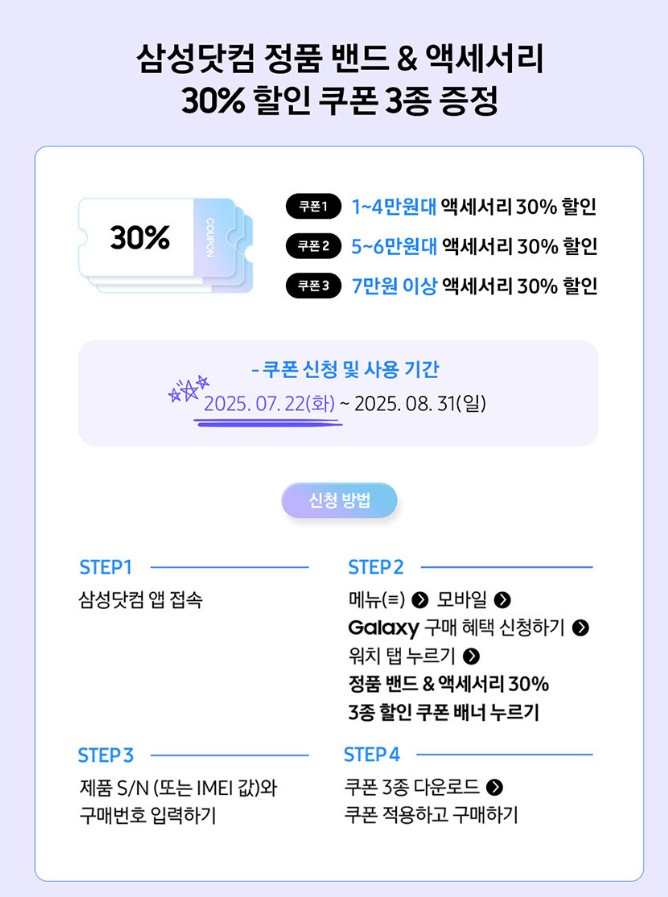 매장 픽업 한정: 정품 액세서리 30% 할인쿠폰 1장 + 삼성 강남 픽업하면 30% 할인쿠폰 1장 더!