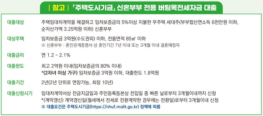 - 주택도시기금 신혼부부 전용 전세자금대출(버팀목) 신규 대출자 및 대출 연장자(21.1월 이후) 중
