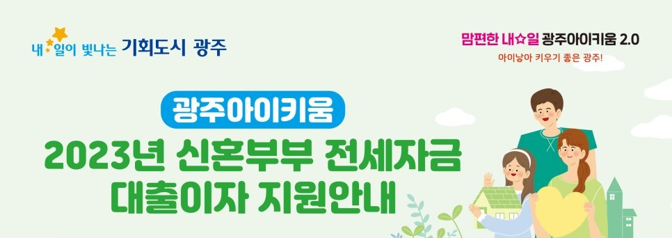 지역별로 신혼부부 전월세 대출이자 지원사업을 하고 있는 것 알고 계셨나요? 지원금액과 기간이 상이하니 해당기억의 내용을 꼼꼼히 살펴보셔야 합니다. 이번 포스팅에서는 광주시에서 신혼부부에게 전세자금 대출이자 일부를 지원하는 정보를 알려 드리겠습니다. 광주시에 사는 신혼부부는 10월 31일까지 신청하셔서 납입한 대출이자의 최대 1% 지원금을 꼭 받으시기 바랍니다.