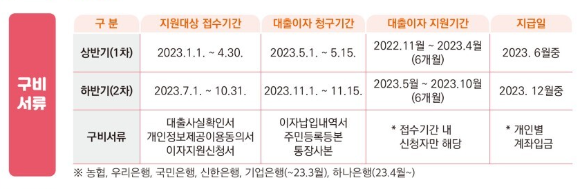 ☑️ 대출이자 지원기간 : 2023. 5월 ~ 2023. 10월[6개월]