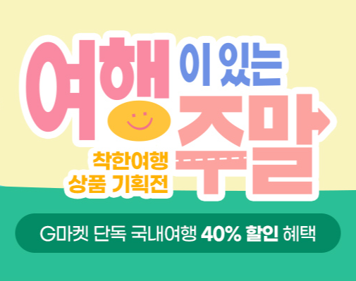 올해 지정된 특별재난지역 20여 곳을 대상으로 국내 여행사들이 제안한 40여 개 여행상품을 선정하여 G마켓 단독으로 '착한여행 상품기획전'코너를 운영하고 있습니다.