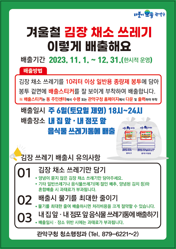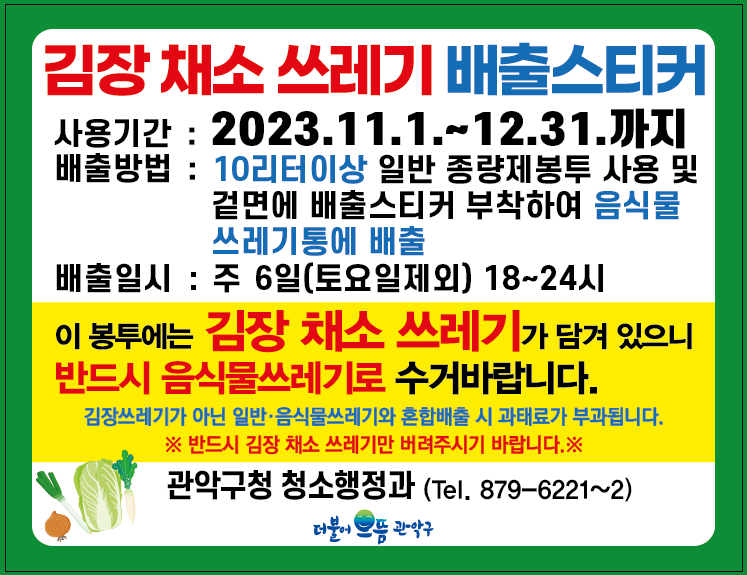 ✅ '김장쓰레기 배출 스티커'를 부착해서 배출합니다.