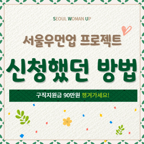 서울우먼업 프로젝트는 미취업한 서울 여성의 재취업과 경력복귀를 지원하는 프로그램입니다. 창업 및 구직활동을 지원하는 본 프로젝트에 직접 참여해서 한 달간 경험한 후기와 함께 서울우먼업몰 사용방법 및 지원내용에 대해 시리즈물로 포스팅 하도록 하겠습니다.