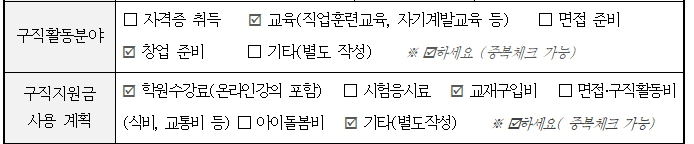 - 구직활동분야 / 구직지원금 사용 계획