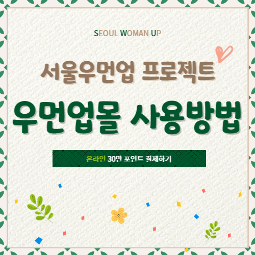 서울우먼업 프로젝트를 통해 받은 구직지원금으로 바로 사용할 수 있는 <우먼업몰>이라는 별도의 온라인몰이 있습니다. 이번 글에서는 1차로 받은 구직지원금 30만 원으로 서울우먼업몰에서 살림용품을 구매한 후기와 함께 온라인몰 이용방법에 대해 알려드리도록 하겠습니다.