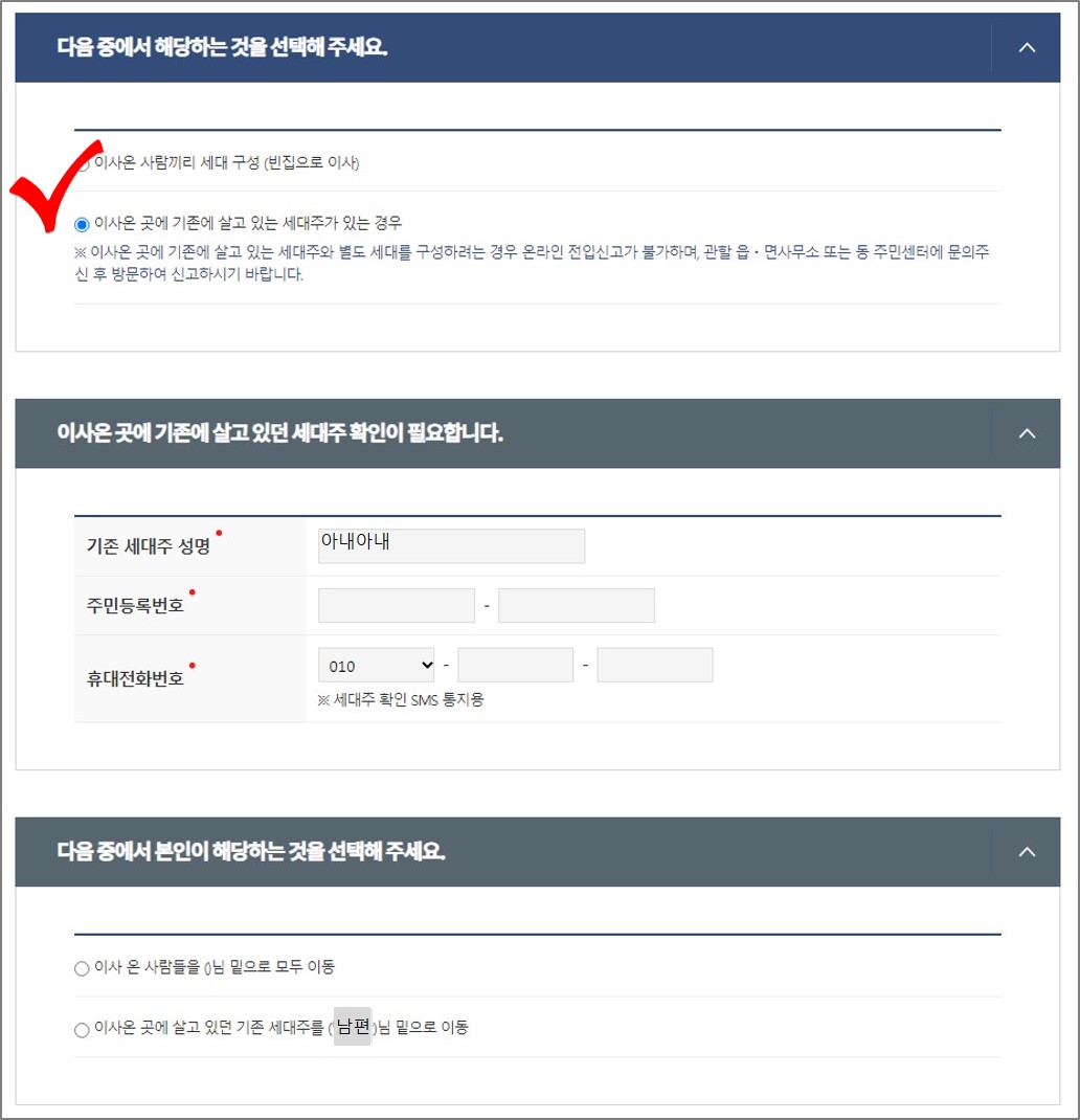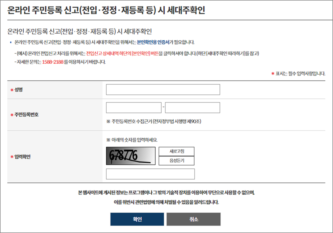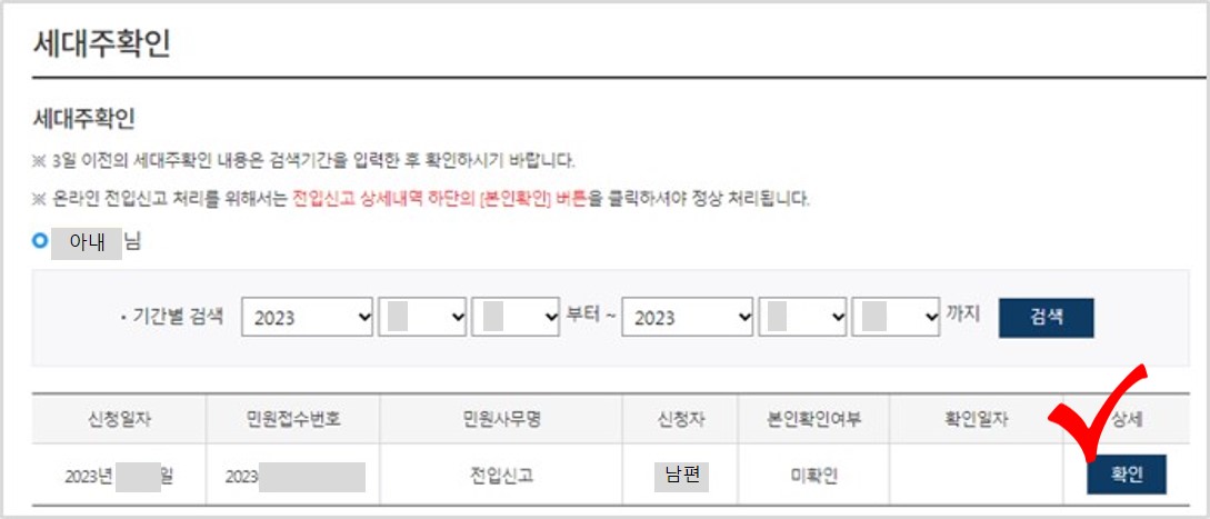 전입신고 인터넷, 세대주 확인