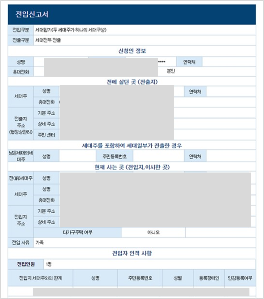 1. 세대주 전입신고
