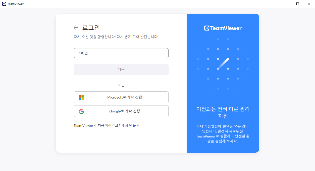 원격지원을 제공하는 쪽 기기에서 팀뷰어에 로그인을 해야 합니다. 따라서 원격제어를 하는 사람은 회원가입을 해야 합니다. 아래 링크를 통해 회원가입을 하세요.