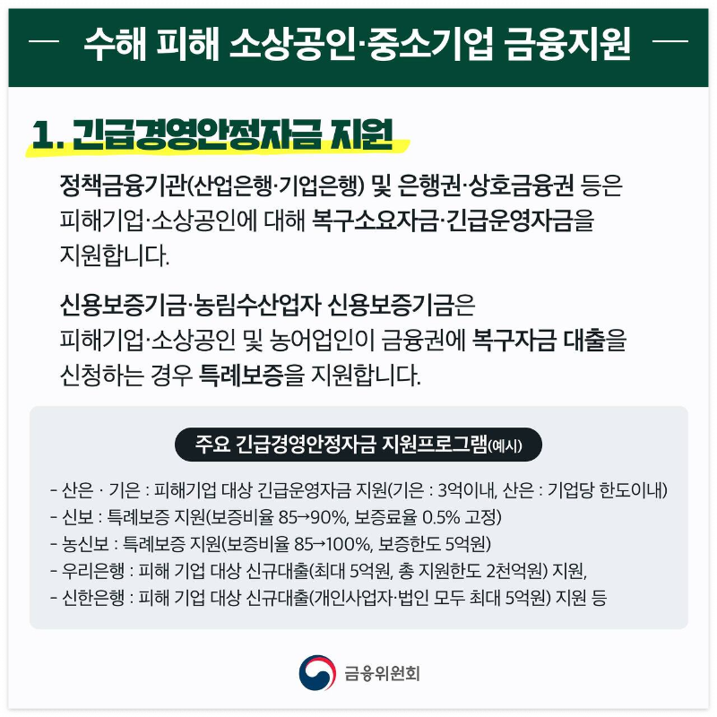 1. 장마피해 가계 금융지원