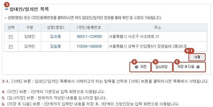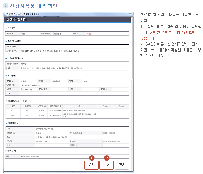 - 계약정보입력 : 임대차정보, 임대인/임차인 정보