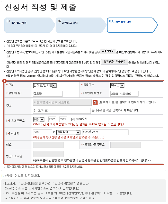 - 신청인정보입력 : 신청인 정보