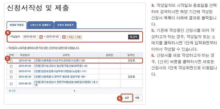 신청서 제출화면