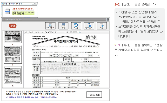 (이 많은 정보를 직접 입력해야하기 때문에 동사무소에 가서 확정 일자 받는게 오히려 편할 수 있습니다) - 임대차계약서 스캔 및 PDF파일 등록