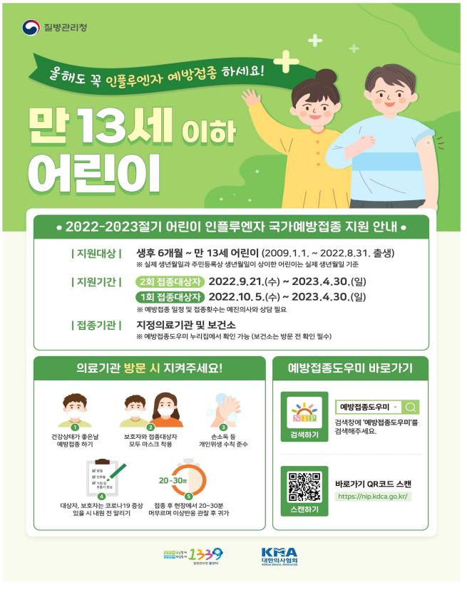 - 대상 : 생후 6개월 ~13세 어린이(2010.1.1 ~ 2023.8.31)