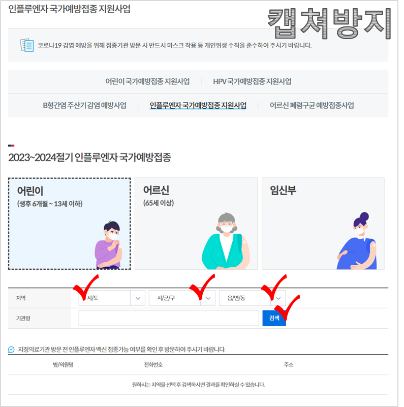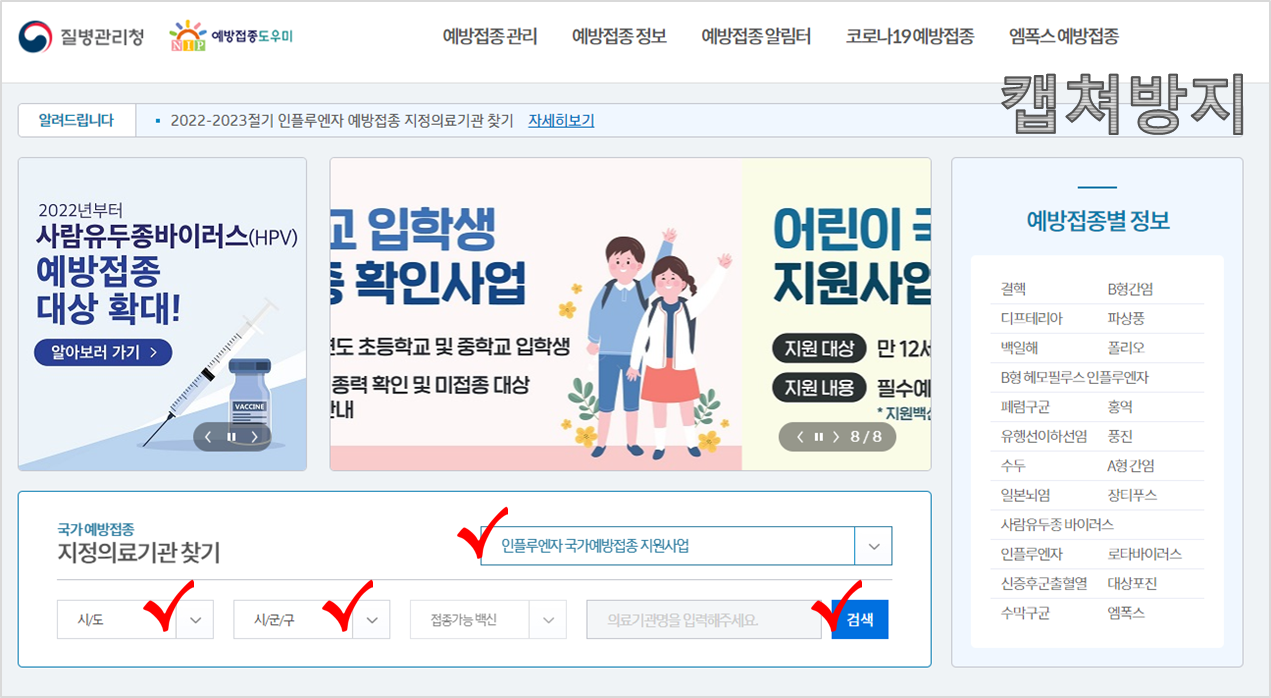 2023 독감예방접종 병원을 찾으시려면 질병관리청에서 운영하는 [예방접종도우미 홈페이지]에서 확인하실 수 있습니다.