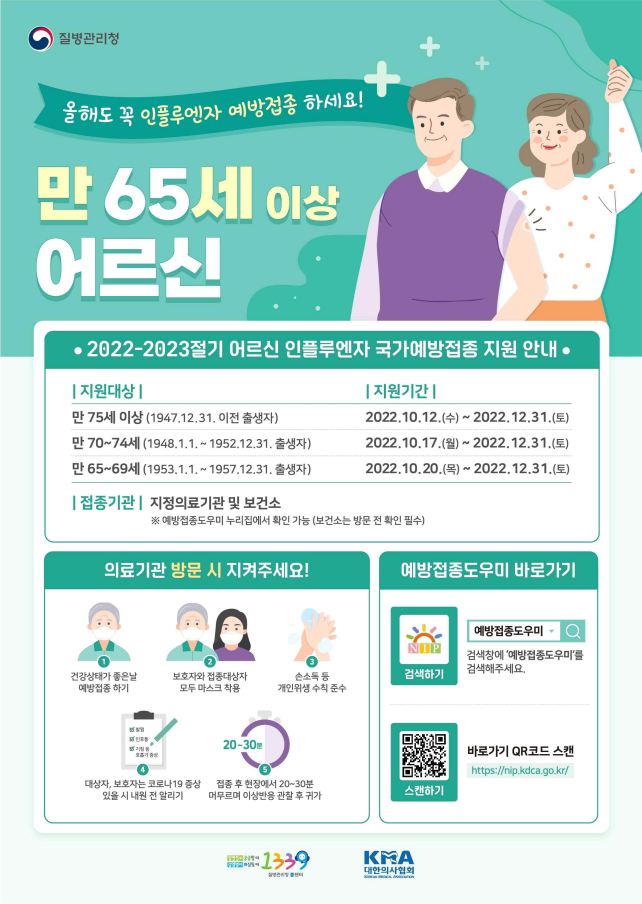 2023년 기준으로 1958년 12월 31일 이전 출생하신 어르신이 독감예방접종 무료대상입니다.