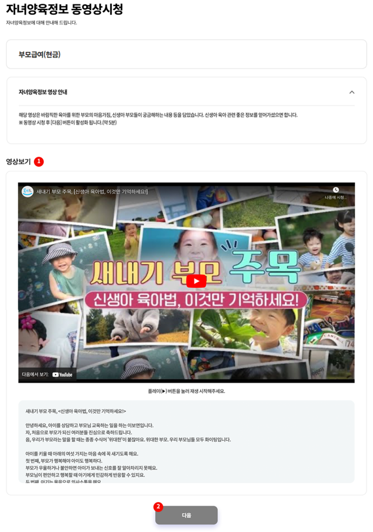 - 만 2세 생일이 도래하는 달의 전 달까지 최대 24개월간 지급받을 수 있습니다.