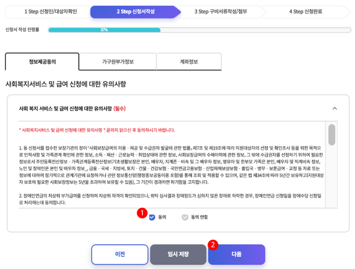 대리신청 시에도 신청서는 보호자 가구원의 자필서명 기재나 인감 날인이 원칙입니다.