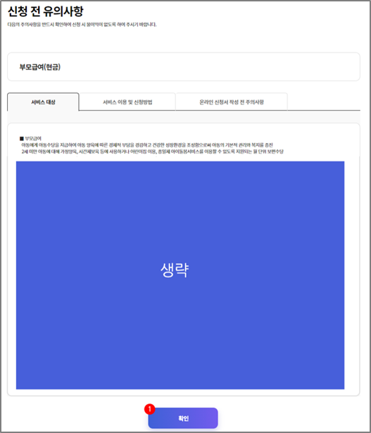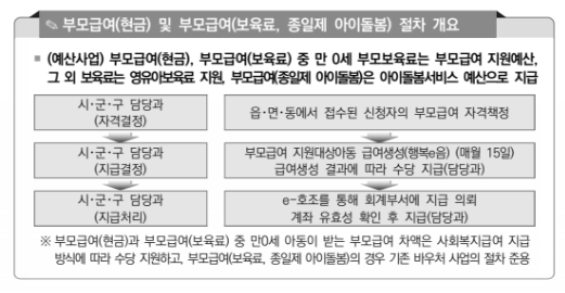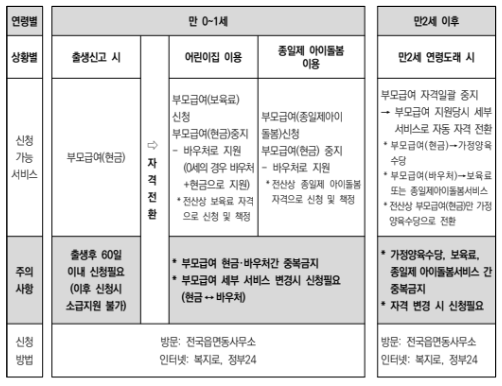 - 현금수급 시 시간제 보육, 시간제 아이돌봄 서비스는 이용 가능합니다.
